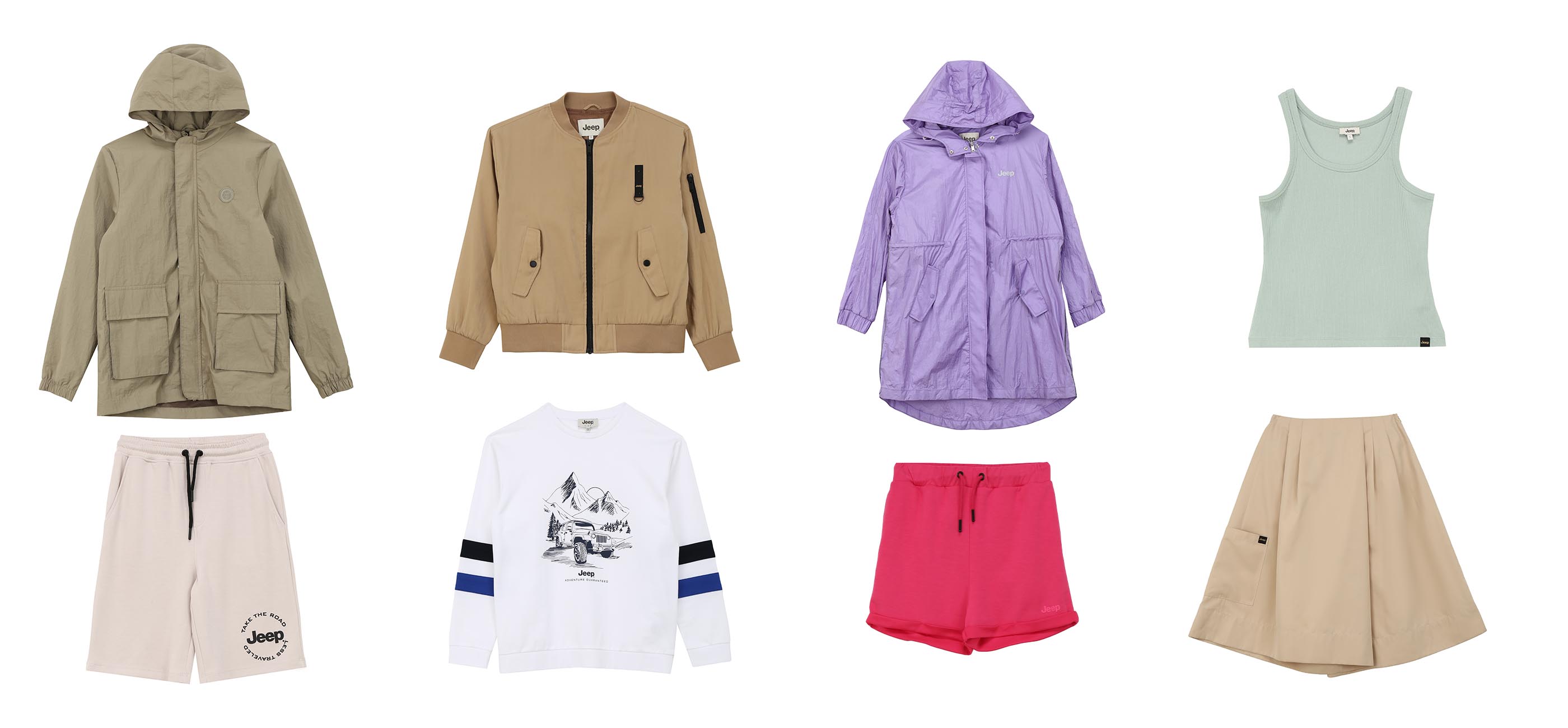 Bomber jackets and suits with shorts stand out in the women's collection with their cuts, which provide a comfortable style while walking or experiencing city dynamics on weekends. Overalls and joggers, on the other hand, are both stylish and comfortable. The Comfortable pieces that enable children freedom of mobility are also popular in the Jeep line. Striped dresses, Jeep-printed t-shirts, and parachute fabric skirts highlight children's fashion with their innovative stance.