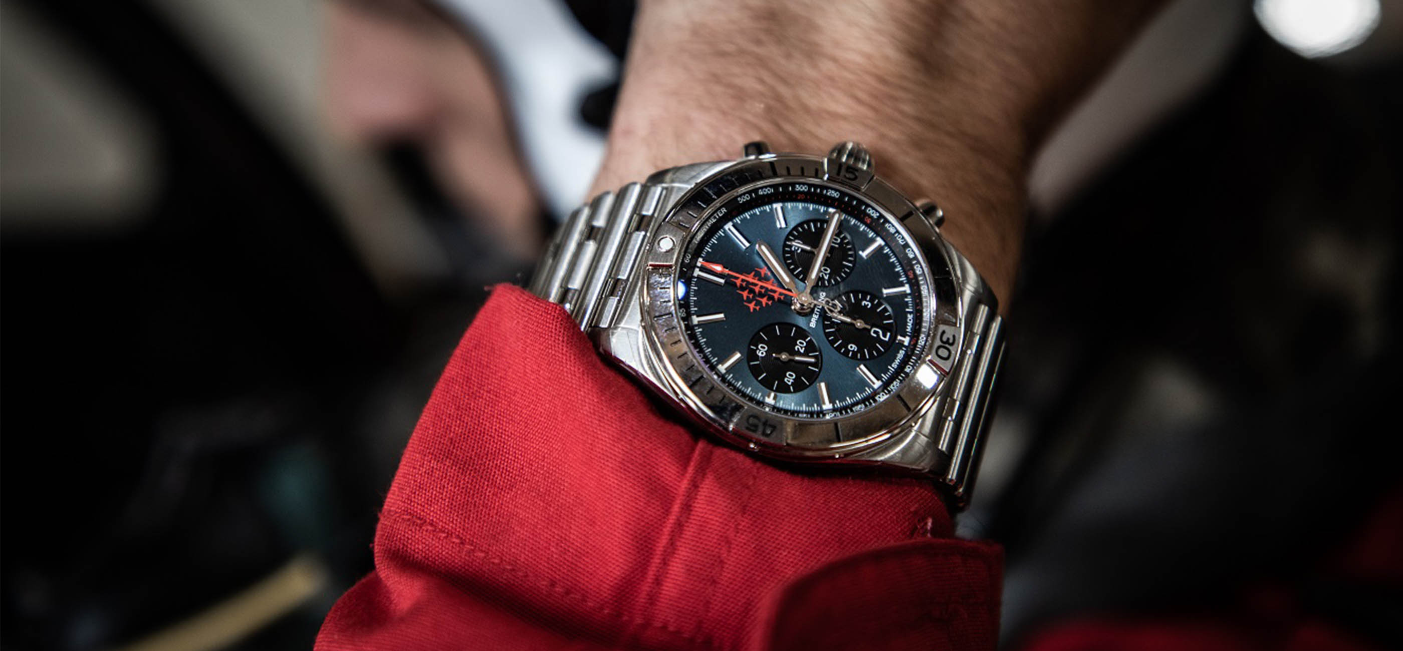 The Breitling Red Arrows limited edition features a RAF blue dial featuring tone-on-tone sub-dials and the Red Arrows Diamond Nine logo on the dial, positioned in a rare execution at 12 o’clock where the Breitling logo is normally placed. It has a 42 mm stainless-steel case with a ratcheted unidirectional rotating bezel, featuring four iconic interchangeable rider tabs, unique to the Chronomat. On the caseback the Royal Air Force insignia is featured in glorious colour for the first time. This patriotic tribute is limited to 160 pieces for each Red Arrows display pilot to have served, and its case back is engraved with the words ‘one of 160’. It is presented on the Chronomat’s eye-catching Rouleaux bracelet with butterfly clasp, the perfect expression of Breitling’s cool modern-retro style. Inside is the in-house Breitling Manufacture Caliber 01 movement that is certified by COSC – the Official Swiss Chronometer Testing Institute that guarantees the accuracy and precision of Swiss watches.