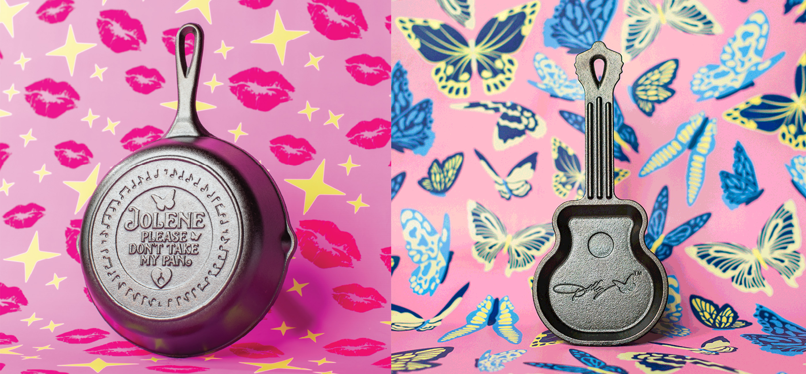The Dolly Parton Cast Iron Collection lineup includes six unique pieces. These include an 8-inch cast-iron skillet engraved with the playful phrase "Jolene, please don't take my pan," inspired by her iconic song, a butterfly guitar-shaped cast-iron trivet and a 9-inch cast-iron clock featuring the lyrics "Working 9 to 5," with its hands cleverly positioned at the 9 and 5.