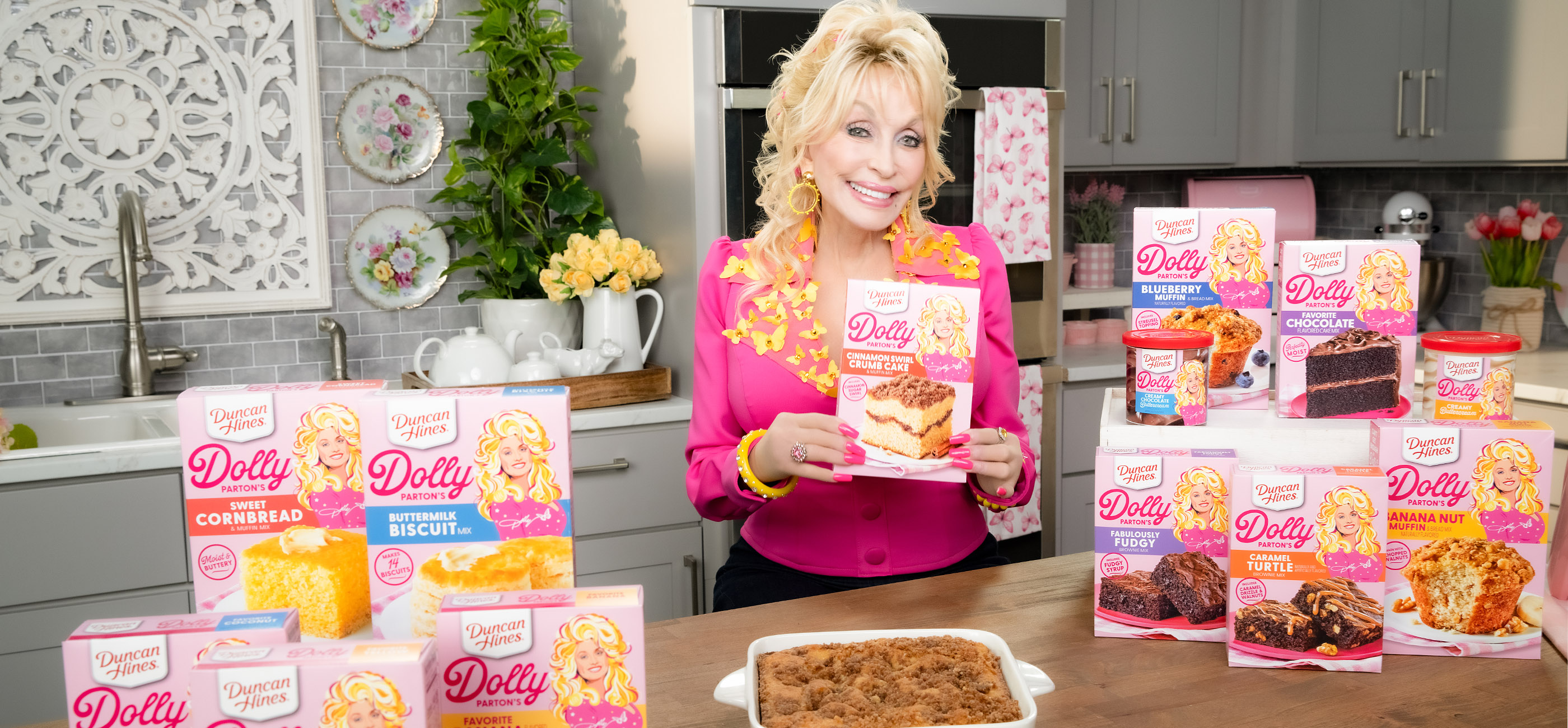 The new products will start rolling onto store shelves nationwide this January, with an expanded line-up of Duncan Hines’ mixes including Chocolate Cake Mix, Yellow Cake Mix, Cinnamon Crumb Cake Mix, Blueberry Muffin Mix and Banana Nut Muffin Mix. Additionally, the first single branded Dolly Parton item, Buttermilk Pancake Mix, will start hitting shelves this winter and marks Dolly’s first foray into the breakfast category. More items are expected to launch later in 2024 including frozen items.