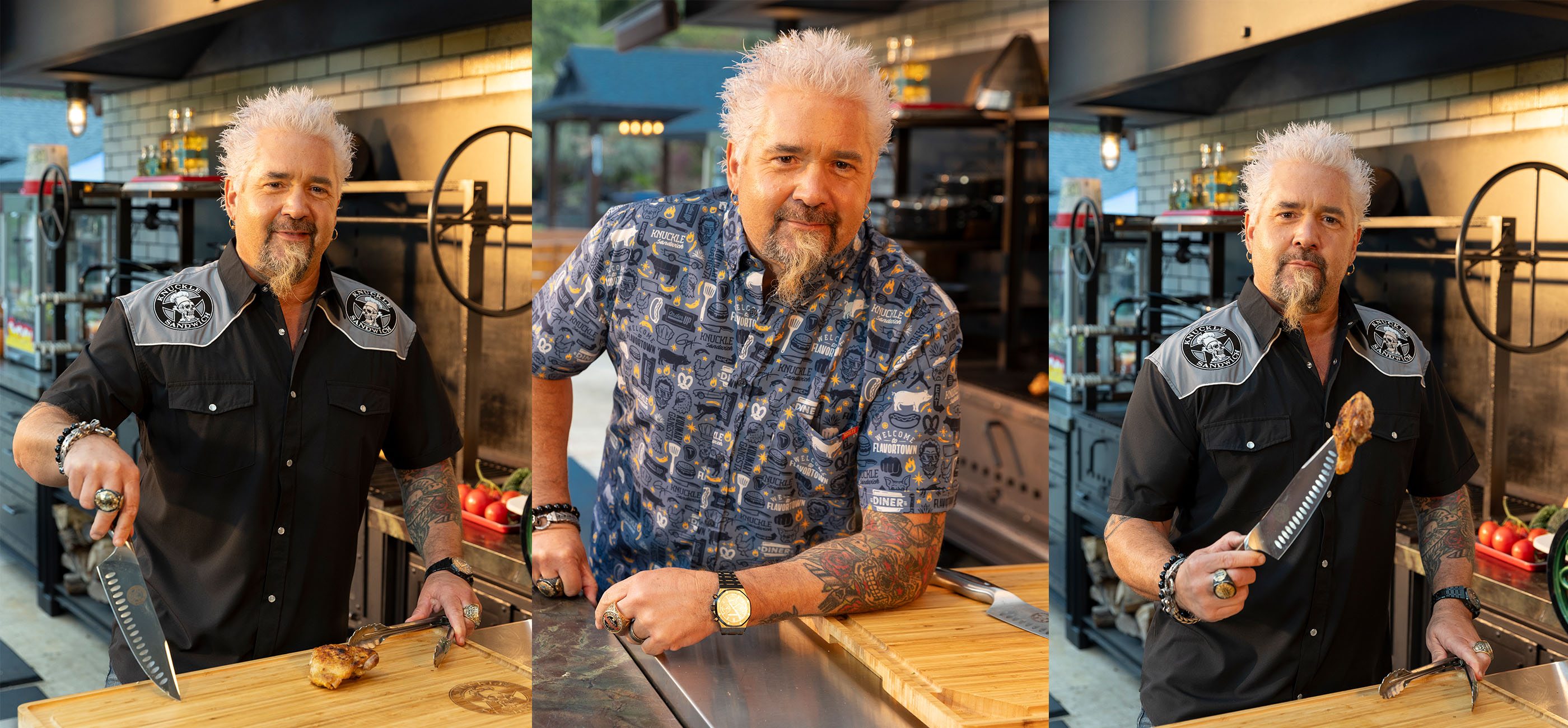 The debut capsule features a wide array of styles and formats, including short-sleeve button-down shirts, a western-inspired roper shirt, a variety of hats, and a can’t miss ultimate grilling apron. Every piece reflects Guy’s larger-than-life energy, bold personality, and unmistakable sense of style.