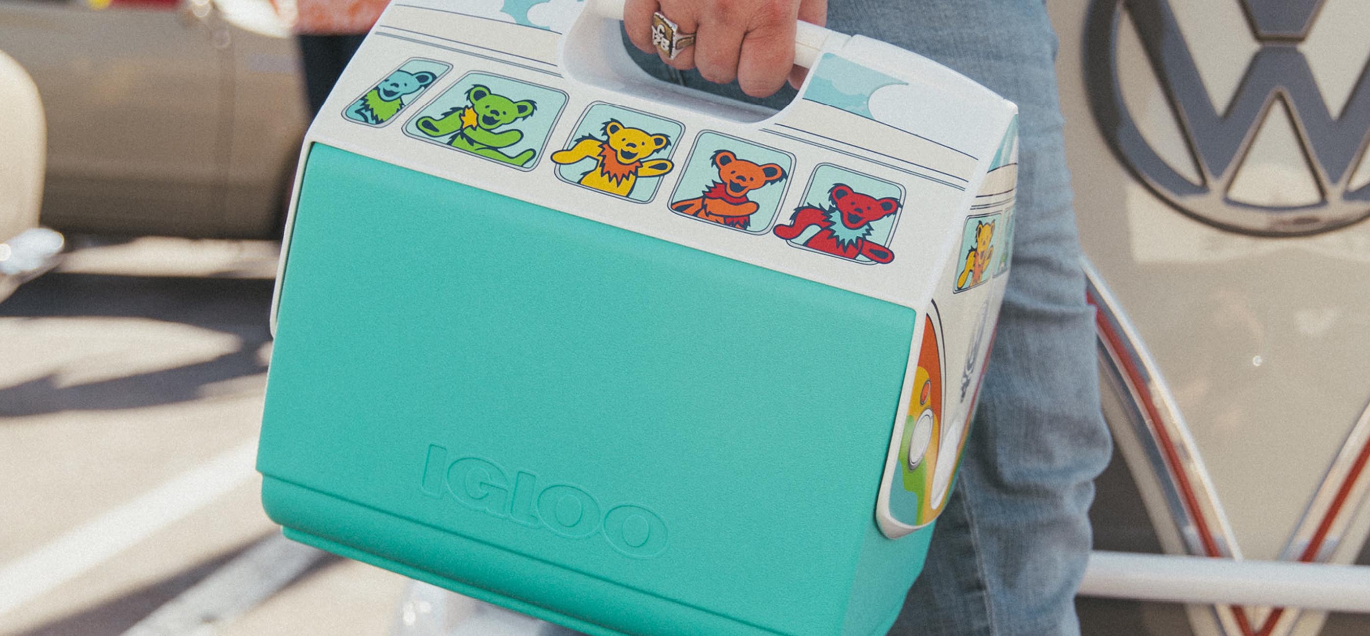 “With this spirited triple collab, we’re transporting Dead Heads back to the good old days when Grateful Dead concerts weren’t complete without a sea of Volkswagen Bus vehicles parked outside,” said Adrienne Berkes, Vice President of Marketing at Igloo. “Our creative design combines this classic van, the iconic Dancing Bears and, of course, our world-famous Playmate cooler. We can’t wait to see fans hitting the road with this very special cooler along for the ride.”