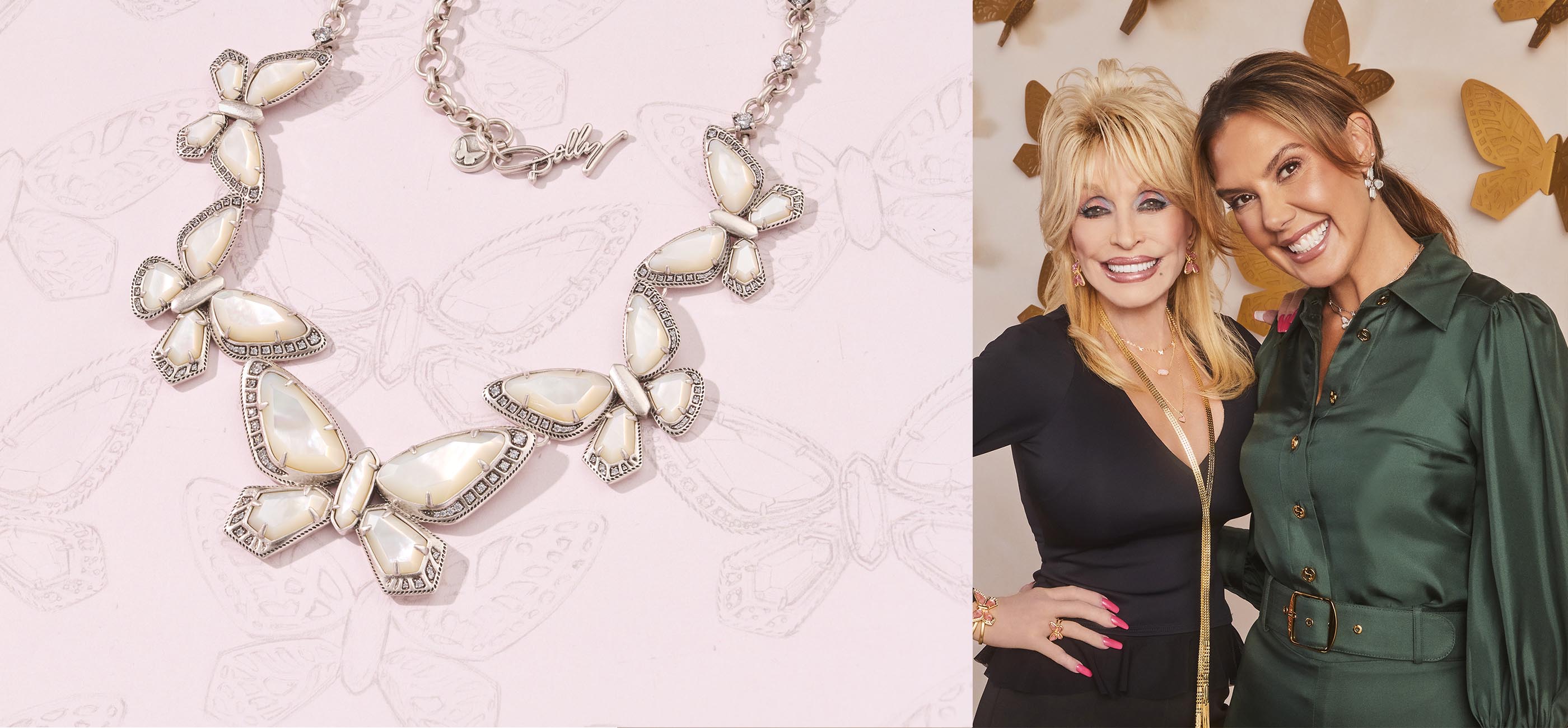 "Before I ever met Kendra, I was aware of her reputation as a self-made woman, her kind heart and of course, her wonderful jewelry line. I was honored to learn she was a fan of mine and even more honored when she asked me if I wanted to partner on a jewelry collection based on my song 'Love Is Like A Butterfly'. Naturally, I said yes. The more I get to know Kendra, the more I love her. She's the real deal, beautiful inside and out. I hope you enjoy our collection as much as we've enjoyed each other while putting it together for you." said Dolly Parton.