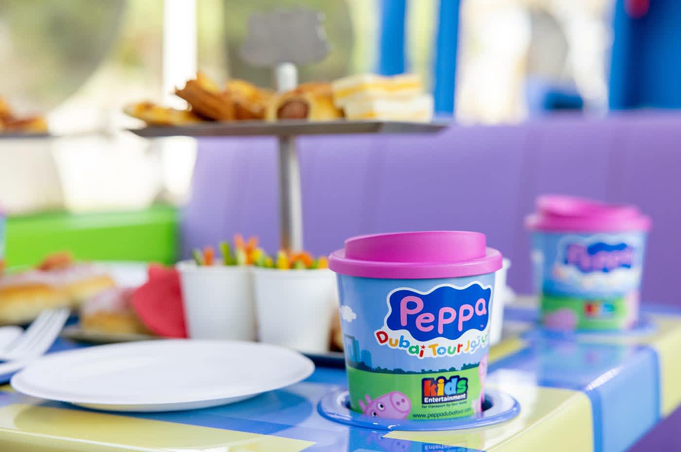 Operating four days a week, Thursday to Sunday at 11:00 AM and 2:00 PM, the bus features 9 tables with a total capacity of 36 guests. Tickets include selected food and beverages served on board, a narrated route crafted with both educational and entertainment value in mind, exclusive Peppa animations showcasing Dubai, and Peppa-themed moments throughout the journey.