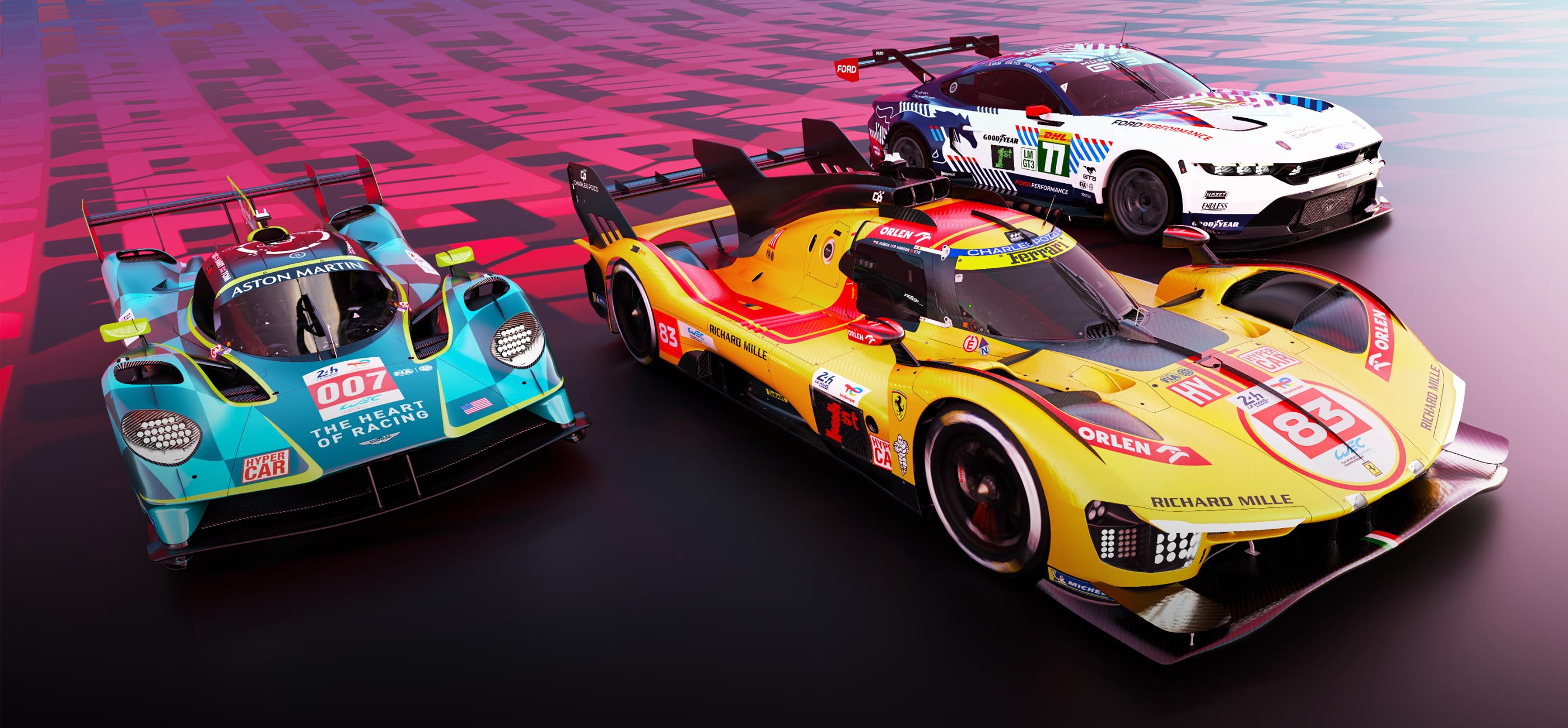 Alongside the Hypercars comes a competitive array of classes. Lock horns in wheel-to-wheel LMP2 competition as well as the ultra-close, thunderous GTE cars. Drive for supremacy for famous brands such as Aston Martin, Corvette, Ferrari and Porsche. Additionally, 3 LMGT3 cars from the 2024 and 2025 season (Mercedes AMG Evo, Ford Mustang and McLaren 720 Evo) have been added to the base game along with the incredible Adrian Newey designed Aston Martin Valkyrie AMR LMH with it’s ear-splitting V12. 17 cars are available in the base game with over 200 different livery variations.