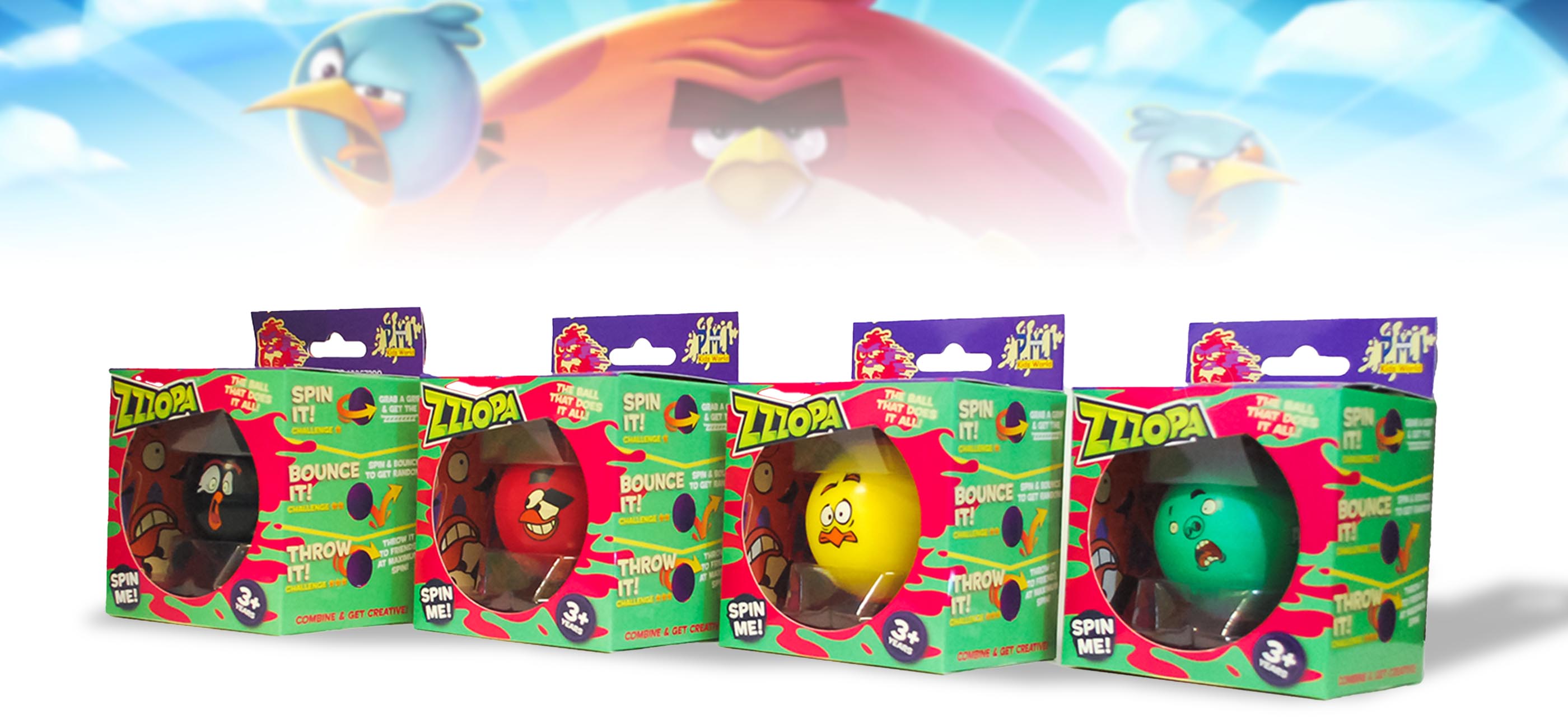 Angry Birds extends their toy line with the new Zzzopa Spinner Ball. PMI Trading & Enterprise LTD., a leading toy manufacturer, and distributor is bringing a new bounce to the Angry Birds toy line with their new Zzzopa Ball, in a deal with Rovio Entertainment brokered by IMG.