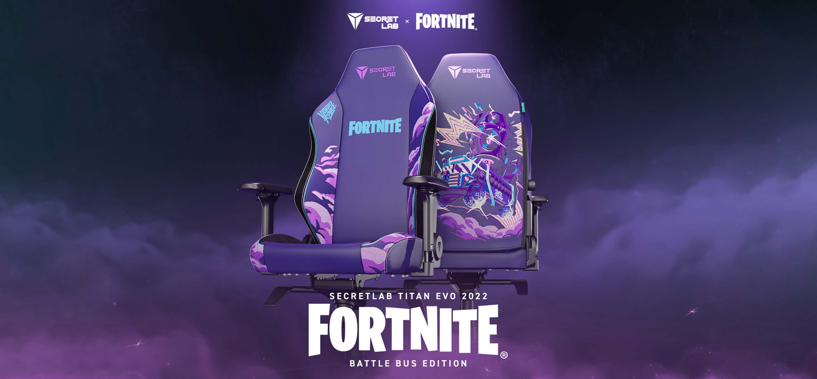 Inspired by the bright and quirky world of Fortnite that has enraptured gamers across the globe, the Secretlab TITAN Evo 2022 Fortnite Battle Bus Edition features an exclusive illustration of the iconic Battle Bus embroidered on the backrest. Upholstered in Secretlab NEO™ Hybrid Leatherette and dotted with intricate embroidery for a pop art effect, the chair’s unique design is set against a dark purple palette reminiscent of The Storm in Fortnite, and adorned with an embossed Fortnite logo at the top of the backrest.