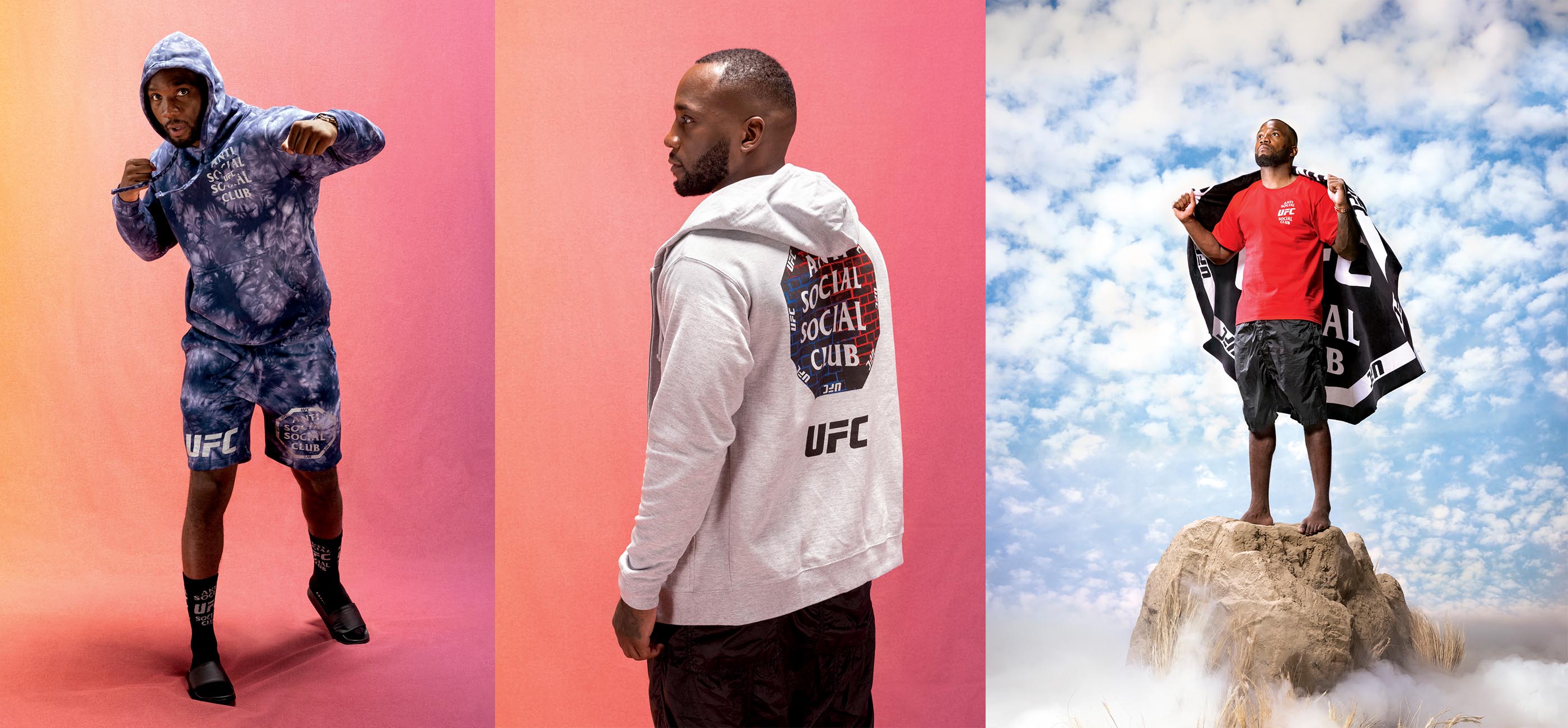 "As UFC fans, we’re excited to be launching our collaborative capsule in celebration of 2023 International Fight Week. Modeled by reigning UFC Welterweight Champion, Leon “Rocky” Edwards, we wanted to ensure the collection covered everything from classic fight pieces in collaboration with Venum and Dyaco, to everyday hoodies and tees.” — Anti Social Social Club.