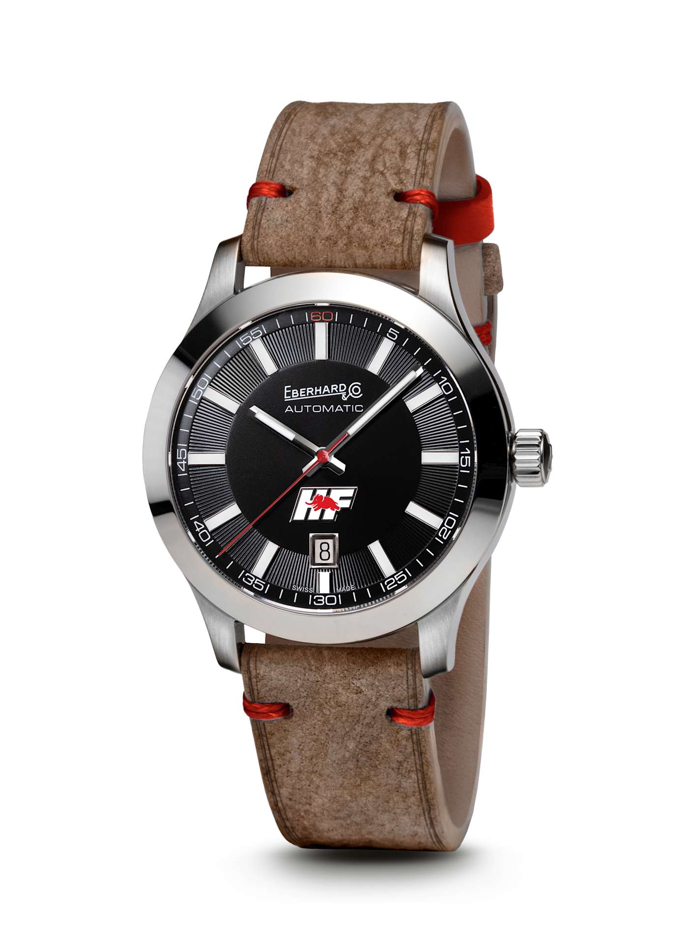 Born from the collaboration between Lancia and Eberhard & Co., the new timepiece celebrates the rebirth of the legendary HF (High Fidelity) logo accompanied by the red elephant, a symbol that marks Lancia's return to the world of rallying.